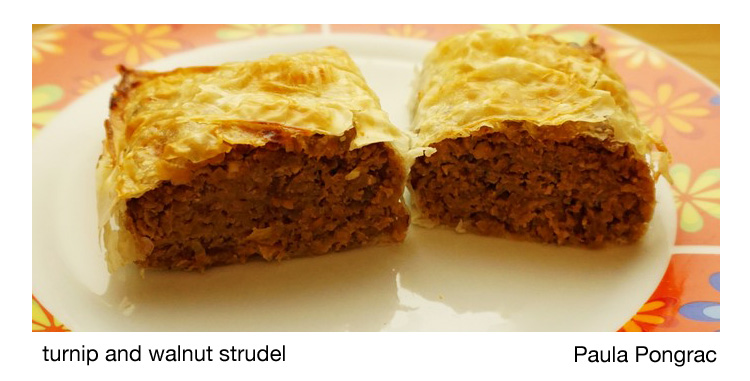 Turnip strudel is a typical strudel in the Međimurje County in northern Croatia …. writes Paula Pongrac …. where my parents are from. Also, very popular are cabbage and pumpkin strudels.